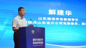 山东通信学会副理事长、中国铁塔山东省分公司党委委员、副总经理解建华为大会致欢迎辞。